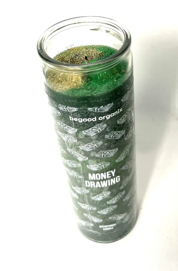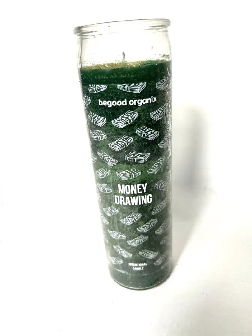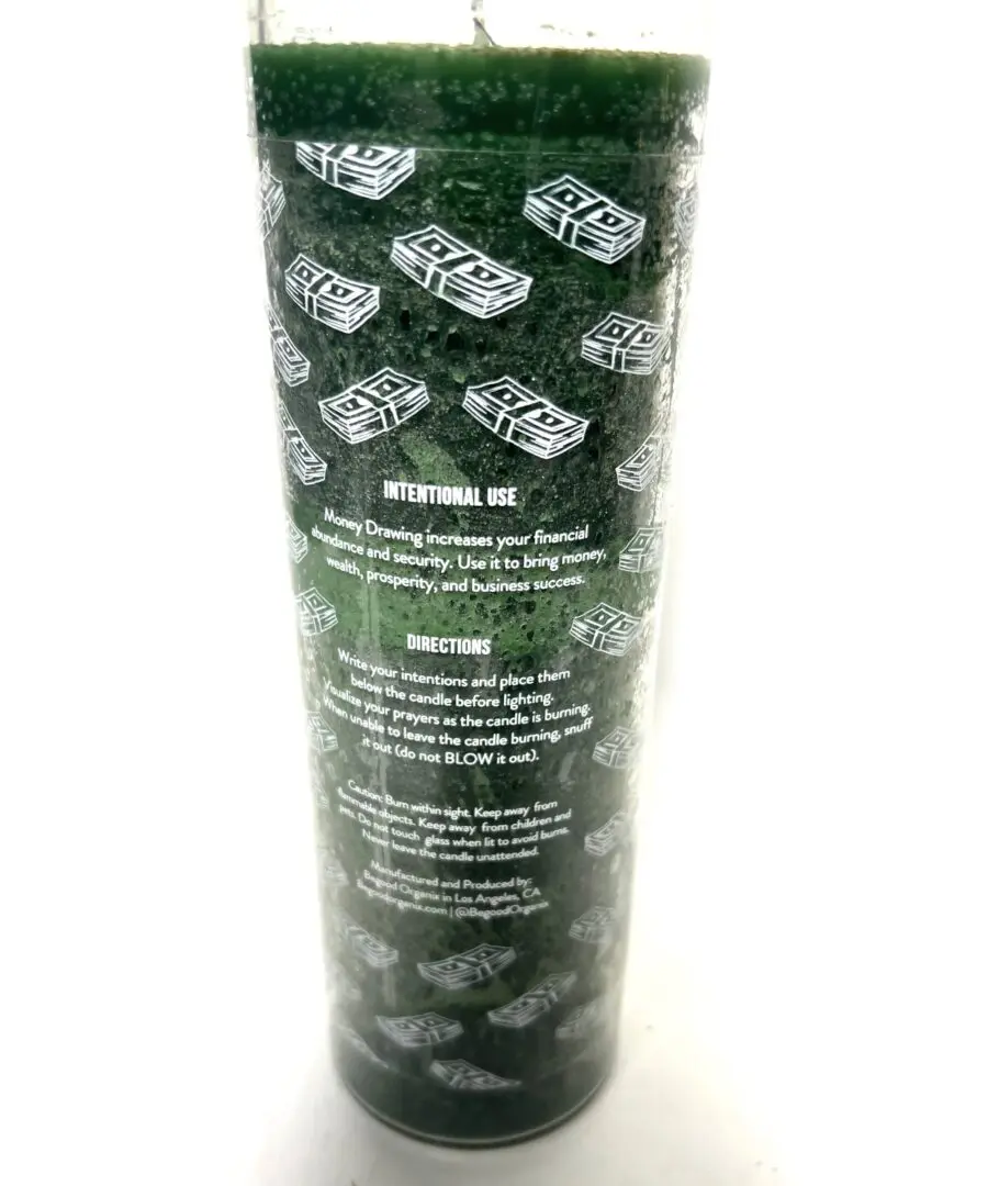 Attract money & abundance with our signature Money Drawing candle. Candle will come dressed in essential oils, herbs & powders. Write your petition (see below for sample) on parchment paper and place it under the candle. Burn candle for 7 days. Toss in trash after spell is done.