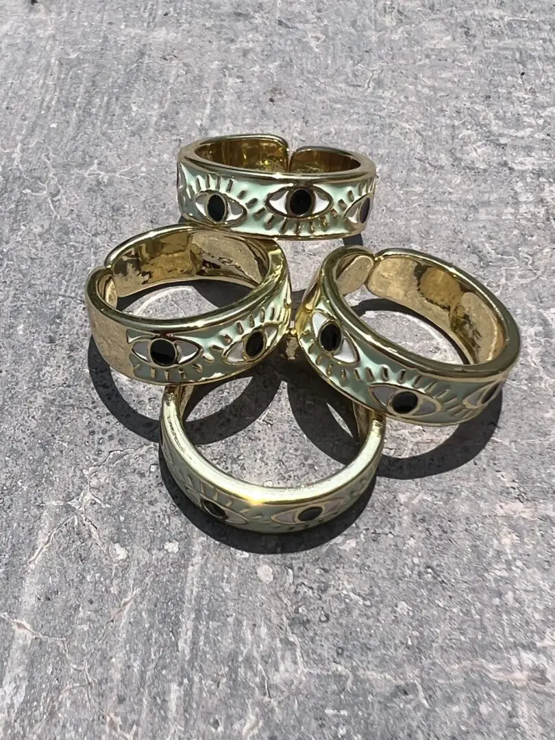 Green Evil Eye Stackable Ring (Gold tone)