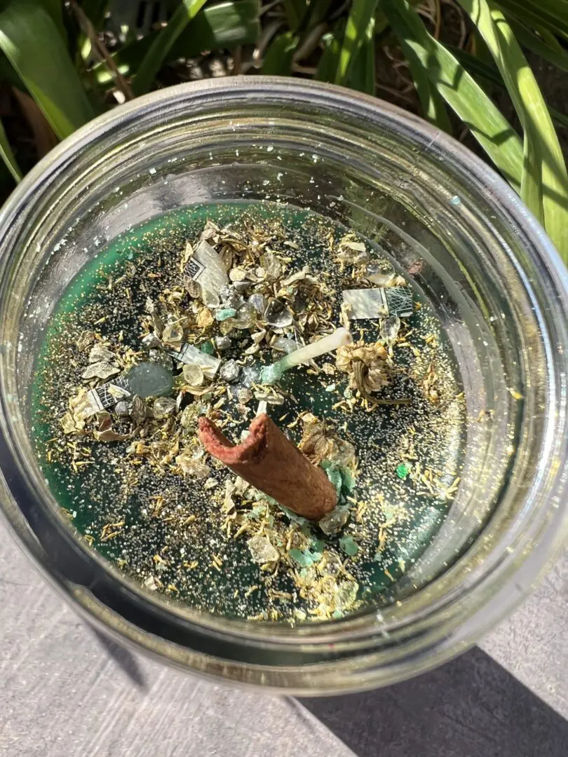 Introducing “Intentional Jars”. These jars are dressed the same way we dress our candles. Just place your petition inside the jar and shake daily to assist in manifesting your desires.