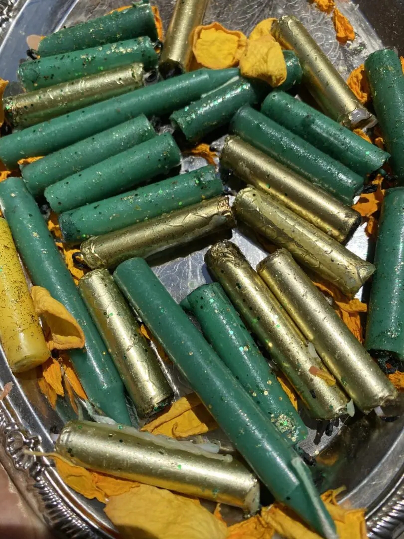 Directions: Burn the end of the candle & place it on top on a saucer or altar tray. Place your petition (what you want) underneath the saucer. Burn the candles daily to attract money.