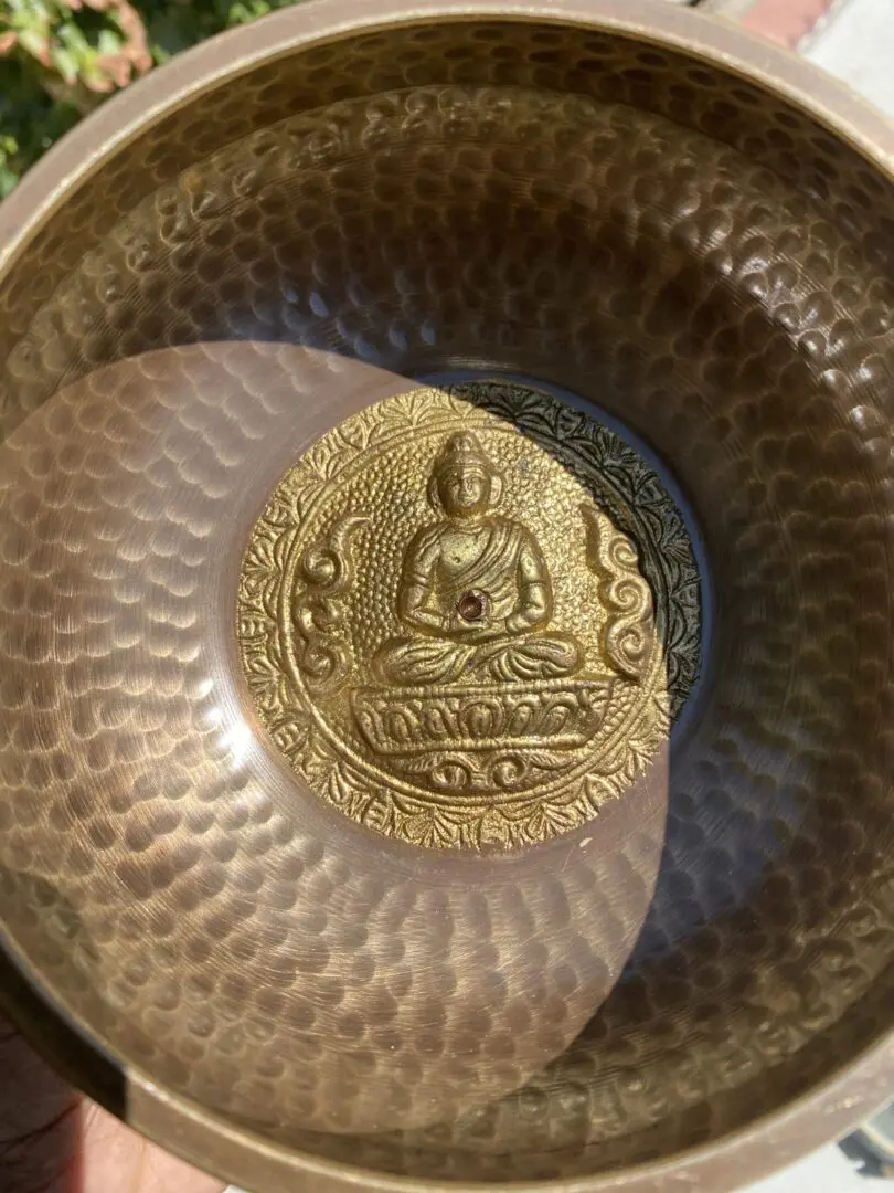 Hand Hammered Tibetan singing bowl with Buddha from India